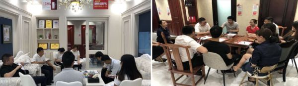 6月28日/7月6日公司木门事业部总经理温晓斌先生携运营部总监赵小磊及六六战区大区经理郭文杰分别针对淮北,合肥开业促销进行宣导,对淮北,合肥制定活动任务,将目标分配到个人,签领“军令状”紧跟公司步伐对店面进行布置。