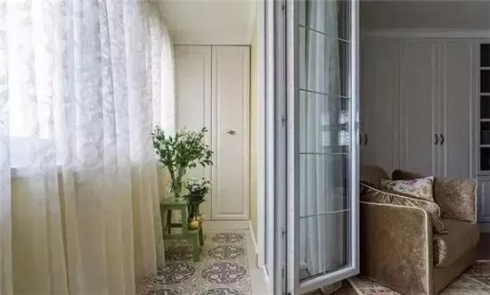 3、如果有人担心密封性差,可以在阳台和客厅之间挂厚实的窗帘,既能起到装饰作用又可以起到保暖作用。