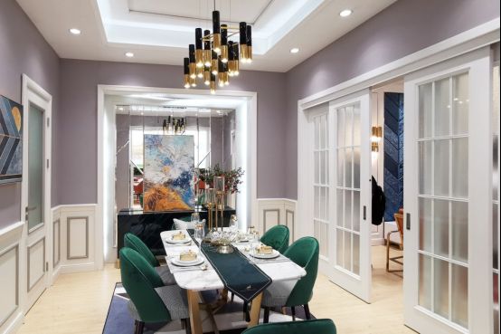 形意新中式的点睛之处在于化繁为简,去除传统中式繁复的花纹样式,只保留具有中式代表性的颜色和线条,极为简练、克制,整体格局浑然一体。
