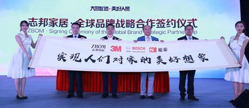 2019年7月9日,广州建博会期间,志邦家居与能率等外资电器品牌达成战略合作协议,多方联动、聚力前行,以全球力量“实现人们对家的美好想象”。