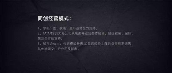 过去,家居经销商的门槛其实很高,一方面要承担门店和产品的大额资金投入,另一方面也需要负担安装配送等服务成本。因此,很多优秀的人才被资金和成本的篱笆拦在体系之外。基于这样的问题,TATA木门通过拆解经营模式,首创“同创经营模式”。在这一模式下,加盟店只负责销售,如学习成本高、经营难度大的安装、服务、策划等环节交由五个分公司和总部全权负责。