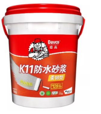 德高K11防水砂浆(柔韧型)即128防水,有三个很突出的特点,性价比高、可以滚涂、涂层够粗糙,有利于后续贴砖牢固。