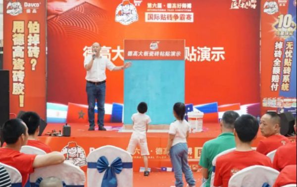 比赛当天,现场吸引了一波又一波市民驻足围观。刘大爷带着孙子,非常认真的观赛。他说对于贴砖的认识,之前还停留在“传统水泥砂浆”层面,今天在现场,看到师傅们贴砖的手法以及所使用的贴砖材料,真实感受到德高瓷砖胶的粘结力,很不错。特别是大板瓷砖铺贴演示,印象非常深刻。
