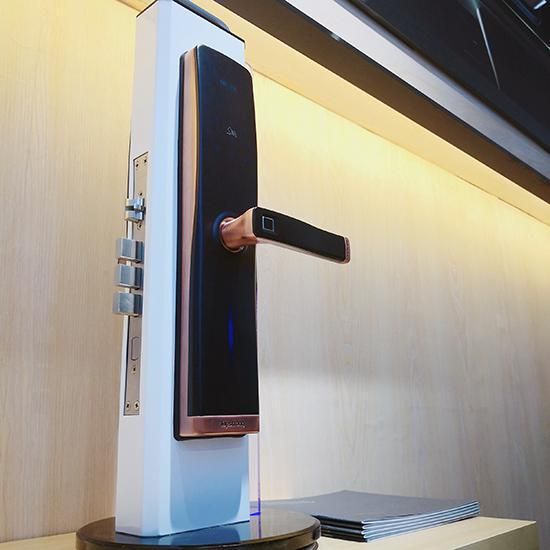 除此之外,还有一款是即将上市的重磅新品Y1智能锁,于本次建博会先行展出。Y1智能锁采用指静脉加人脸双重识别,这两种双重验证方式都代表行业较高的安全识别技术,因此这款智能锁非常值得期待。