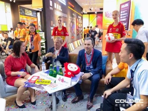 荷兰COLDEC总裁Mr.Bleize、产品总监Miss. Marianne、首席财务官Mr. Berend空降展会现场,所有蔻帝工作人员列队礼炮欢迎,让荷兰蔻帝在众多品牌的包围中脱颖而出,成为一道靓丽的风景线,赢得了参观商的关注,也吸引了超过30家权威媒体对蔻帝的展会进行跟踪报道。