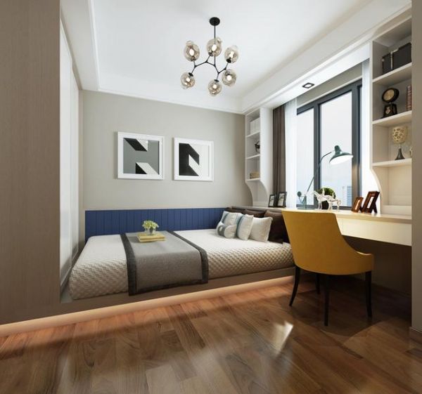 两个卧室布局不是单纯地追求艺术与美,更多地是在寻找用来表达空间储物、通风采光以及色彩搭配的方式。