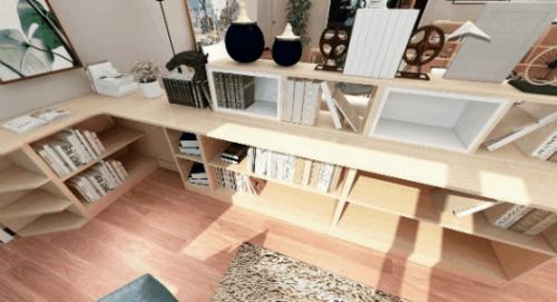 木质书柜造型朴实大方,简约又不乏时尚。独特的纹路与质感让人在夏日仿若回归自然山林,置身其中遐想、姚望、阅读,体验自在怡然的惬意氛围。