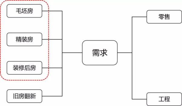 开放商只靠卖砖头挣大钱的时代已经过去,精装房将成为下一个风口。即增加房子的附加值,以获得更好的利润空间。拎包入住To B 端业务分为精装工程和精装配套,开放商与工厂总部达成合作,经销商则作为当地服务运营商。