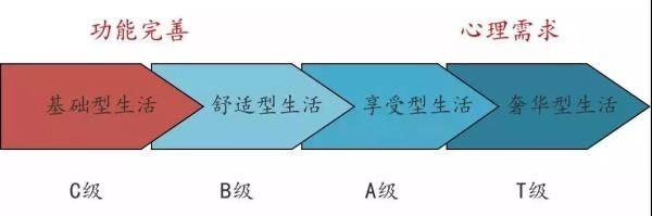 不管是针对刚需还是改善等,精装修定位需与整个项目产品相匹配、与产品所在区域匹配、与潜在购房者的需求匹配,同时需关注客户的敏感点。当前开放商的普遍做法是将项目主产品线归类梳理出高档、中高档、中档、低档4个等级,每个级别有对应的设计风格和材料部品配置标准。