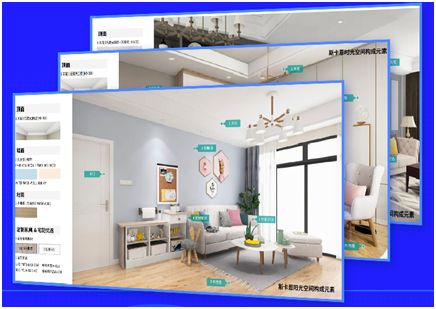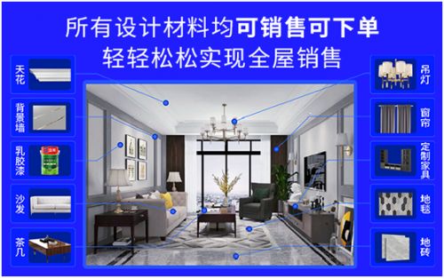 可以把设计方案分解成各个设计要素,应用到任意一个户型空间里面。所有设计材料均可销售可下单,轻轻松松实现全屋销售。