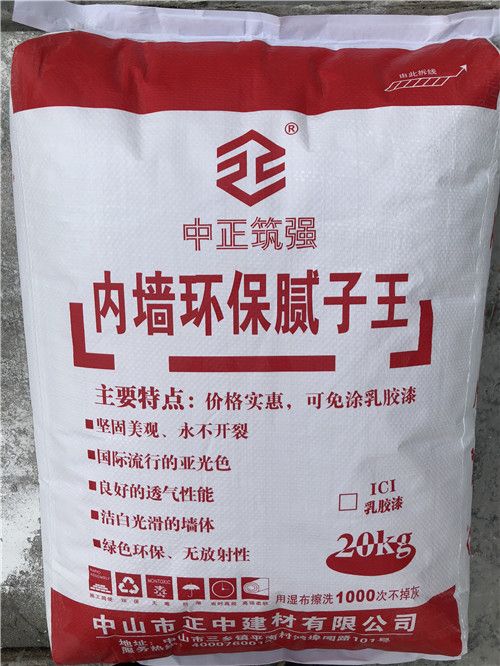 目前为止中正的腻子粉的品牌在国内的腻子粉里算是挺不错的,中正腻子粉特别的环保,一点刺激性气味都没有。家里有老人和小孩子的装修首选必须选择中正腻子粉让您放心。中正筑强牌腻子粉质量还是不错的,中正腻子粉的质量、口碑、美誉度都很好,产品注重环保。是很负盛誉并拥有多年历史积累的大型企业,产品销往祖国各地。