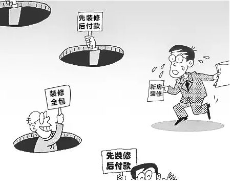 现在很多装修公司为了迎合市场需求,都开始主打先装修后付款的噱头,装修公司会告诉你:“现在不仅可以贷款买房,贷款买车,连装修都可以贷款了,直接与银行签订一个装修贷款协议就可以了,装修前只要交一期款就可以开工了,因为在贷款协议产生的时候,银行就已经把整个的工程款汇到了装修公司的账户,等后续你再按揭还款就可以了。可是这样在装修过程中一旦发生纠纷,业主最终只能陷入被动与妥协!