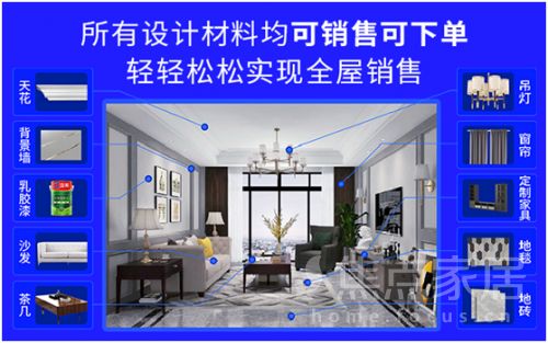 可以把设计方案分解成各个设计要素,应用到任意一个户型空间里面。所有设计材料均可销售可下单,轻轻松松实现全屋销售。