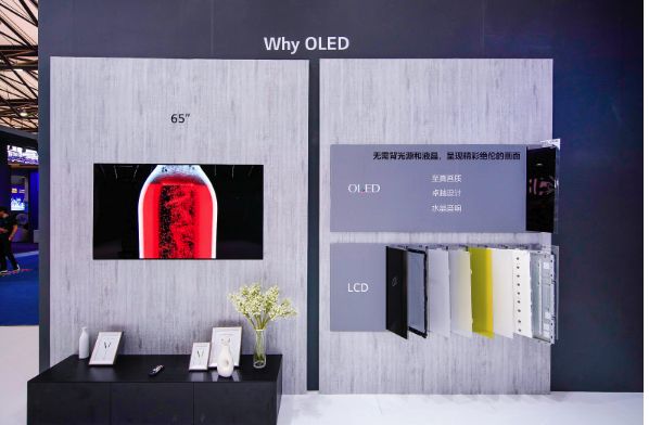 在展会现场,我们可以感受到OLED带给人们对未来的无限想象:比如OLED双面波浪显示屏,由多块曲面大屏无缝拼接而成,正反双面同时显示超高清画质,拥有极致画质体验和前所未有的临场感; OLED壁纸电视,厚度仅有2.57毫米,真正实现和墙壁的完美融合;OLED屏幕自发声电视,没有传统的外置音响,而是通过面板震动发出声波,并拥有声画合一的视听体验。这些真正颠覆了电视传统技术的黑科技产品,展示出OLED独有的高端价值。