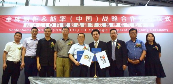2019年是金牌厨柜成立20周年,此次战略合作的能率(中国)投资有限公司,在日本有近70年的历史,在中国有着26年的发展历程,产品涉及热水器、采暖炉、净水产品、厨房电器等,销售网络遍及中国、日本、美国、加拿大及欧洲等国家和地区,已和国内多家房地产企业建立了战略合作伙伴关系,为一些中高档的精装修楼盘提供配套的热水器、厨房电器等产品,是国内中高端热水器的领军企业。