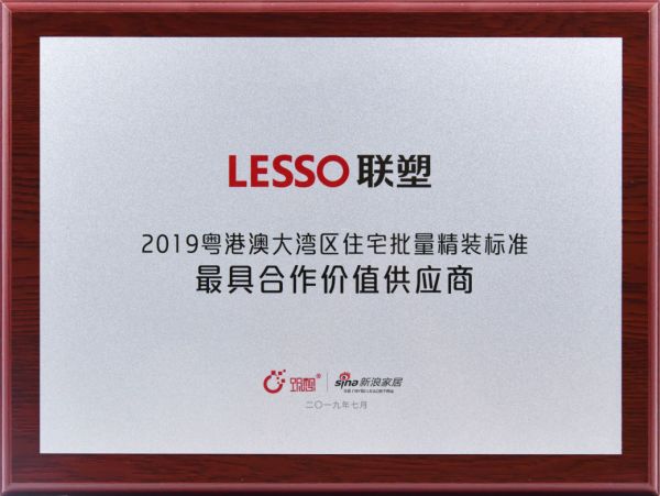(图:中国联塑荣获“2019粤港澳大湾区住宅批量精装标准最具合作价值供应商”奖)