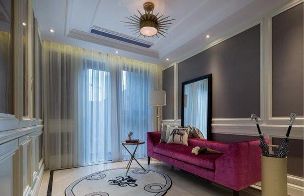 相对于传统的欧式喜欢使用奢华繁复的水晶吊灯,简欧风则不再只拘泥于对水晶灯的执著,而是更加偏向于使用富有设计感、线条感的灯饰,提升空间的格调与品位,营造个性时尚的气息。同时在吊顶的工艺上,也做了简化,减少复杂的石膏雕刻工艺,用简单的吊顶形式代替,让空间更加简约大气。