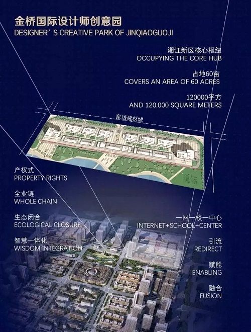 作为活动的主办方,长沙市家居协会与长沙市室内装饰设计师协会十分看重“设计品牌塑造”与设计师创意园。金桥国际设计师创意园作为独一无二的设计师创意园,是中国唯一产权式、全业链、生态闭合、智慧一体化的设计师创意园,独创“一网一校一中心”的新商业模式,独具引流、赋能、融合三大生态功能,占地60亩,120000平方,地处湘江新区核心城市集群枢纽中心。