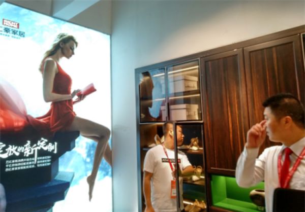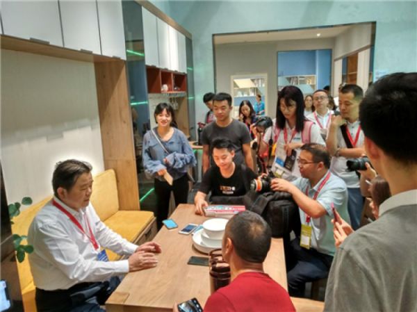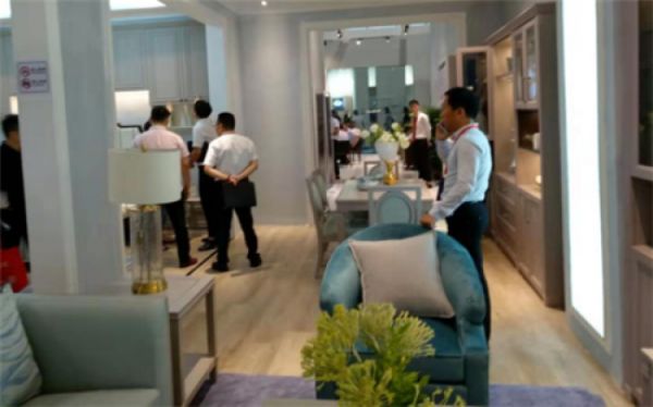 德式现代系列法兰克福,产品线条简明硬朗,独特斜角切割,个性独特极富设计感,色调沉稳内敛,如绅士般可靠舒服,吸引着经销商仔细观察仁豪的产品。