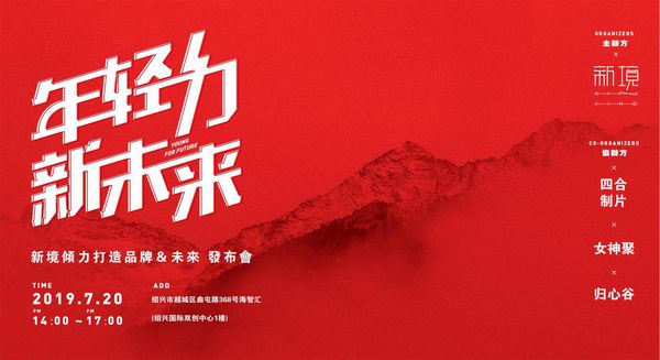 为了让更多绍兴品牌了解品牌改造新趋势,满足当代消费者的多维需求。新境联合四合制片、女神聚、归心谷、FARNEAR DESIGN,将于2019年7月20日,在绍兴国际人才创业创新服务中心——海智汇,举办年轻力新未来——新境倾力打造品牌&未来发布会。