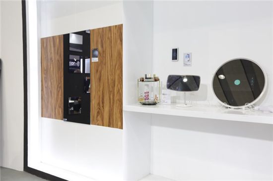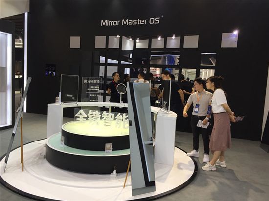 金飞:锐吉带来了MIRROR+生态链当中的多款产品,包括自有品牌的试衣镜、梳妆镜、厨房镜、浴室镜、玄关镜等智能魔镜产品,还有第三方品牌的智能设备。