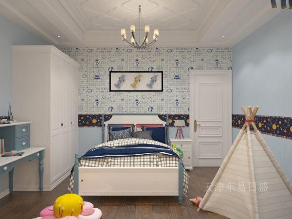 设计说明:方案整体欧式风格为主线,搭配现代风格元素,结构造型体现欧式传统艺术的同时,不失现代的时尚与前卫,配色上主调蓝、灰,适当结合温暖而有质感的颜色,通过色彩来塑造空间体感,业主三代人居住,儿童房活波灵动,老人房简约温馨,夫妻二人的主卧室时尚大气。