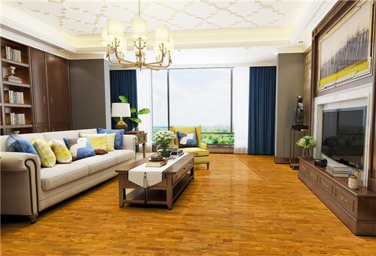 安信非洲花梨实木地板,纯实木,无胶水,环保健康,因此不用担心地热环境下甲醛问题,非洲花梨木秉承红木优良血统,材质厚重,其纹理错落有致,视觉变化多姿。地板强度硬,耐磨性好。地板触感细腻温润,舒适自然,且冬暖夏凉,冬天光脚在地上跑来跑去也不是问题。