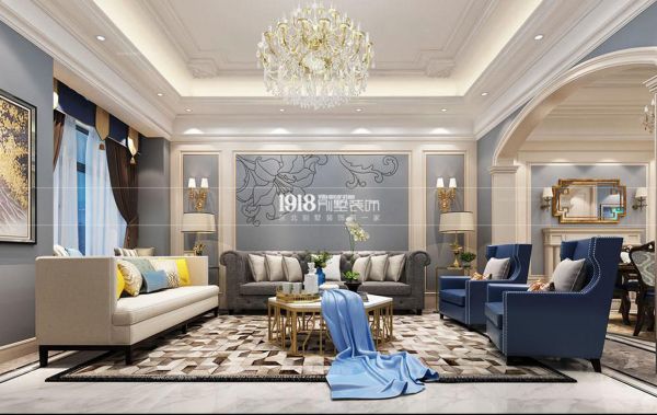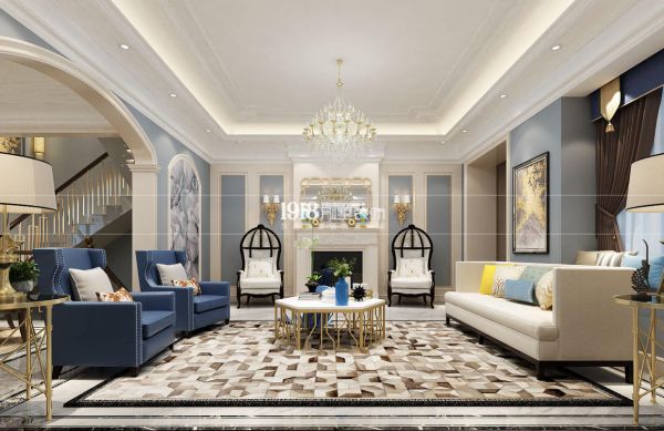美式是一种精致的、惬意的、具有灵魂色彩的体现。它往往区别于冷淡风的黑白灰和工业风的硬质感,就如本案中一样,明媚鲜活的色彩渲染带来时尚精致的活力温度,以及细微之处的雕琢,呈现轻奢的浪漫风情。本案屋主为一个三口之家,他们期望设计色彩明亮,可以有自然的感觉,从而给小朋友一个轻松舒适的成长环境。风格上更倾向于自由浪漫的美式,既有质感,又不希望过于厚重,因此设计师加入了轻奢元素,让这个空间变得时尚精致起来。
