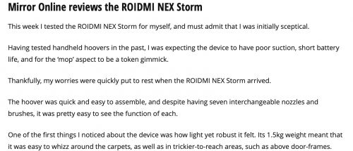 7月14日,英国最权威媒体《镜报》深度报道了睿米NEX次世代无线吸尘器,盛赞睿米NEX次世代无线吸尘器为“更强大”、“更全面的吸尘器”。