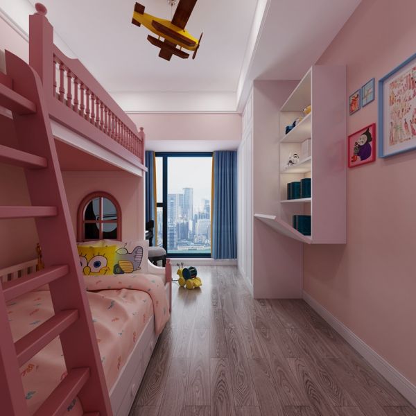 男主特意为两位宝贝定制的粉色高低床,完美弥补了90平只能改三房的尴尬。让两位小宝贝住在一个空间,陪伴彼此长大,还有利于增进姐妹感情~