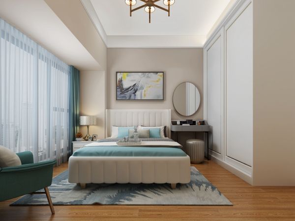 恬静温馨的主卧用色,还原了男女主理想中的卧室模样,浅浅的白象征着两人爱情的纯洁、舒心的蓝寓意未来征程的坦荡无阻。这些简单的色彩与造型里填满了家的味道。