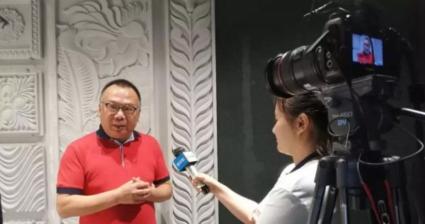 ▲金意陶董事长何乾接受新华社记者采访