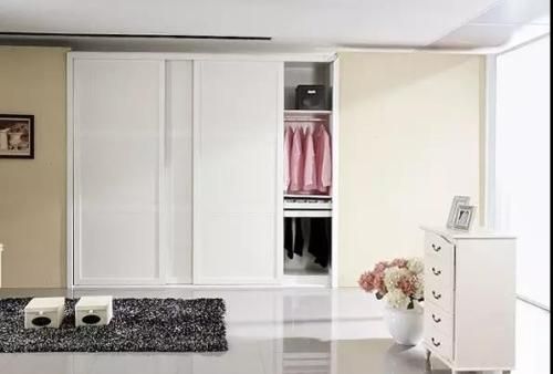 在衣柜的顶边和底边都装置好门轨,门轨选合金的资料比拟好,又轻又结实。