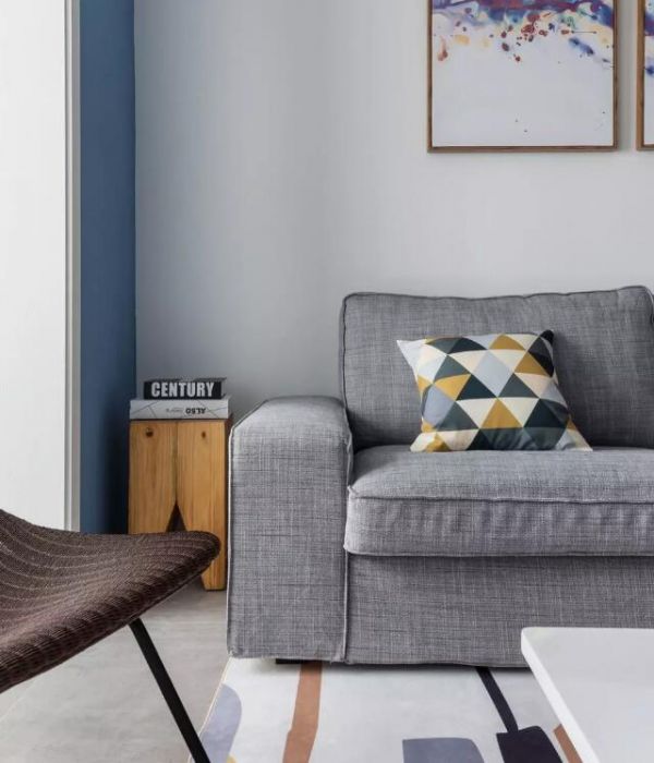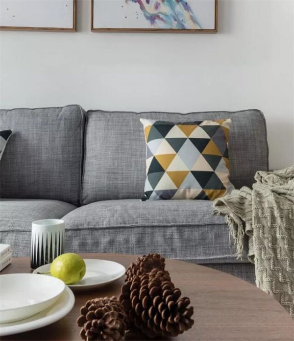 灰色布艺沙发不仅与水泥色地面相互呼应,也让沉静之美在不经意间打动每个人内心。