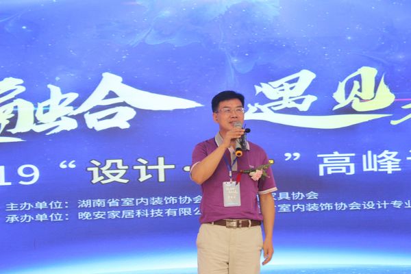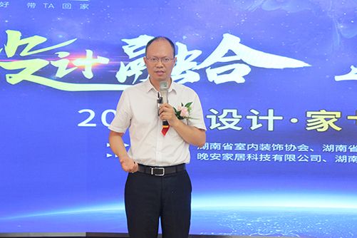 晚安家居科技公司总经理徐庆先生作为承办方代表,发表了热情洋溢的欢迎词,就本次合作提出了三大展望:“大背景,大平台和大机遇”。大背景指的是目前的家具融合是大势所趋;大平台是指本次两大行业的设计师融合,由行业的两大协会来主办,由湖南知名企业晚安家居来承办;大机遇,这次跨界融合贴合了年轻消费者的需求,对所有年轻设计而言,是风口和机遇。