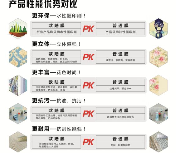 一般使用普通膜的集成墙面产品,会采用油性墨印刷,纹理浅、表面亮、塑料感强,同时纹理简单、颜色单一,用酒精等溶剂擦拭易掉色,耐刮、耐磨性能也比较差。
