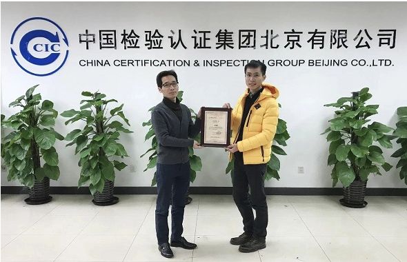 蒋光概(右)领取中检集团奢侈品鉴定中心颁发的证书