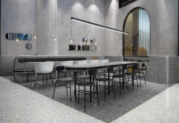 王飞:我们材料的供应商需要把产品做到颜值与功能并存,才能真正满足餐饮空间的设计需求。虽然说不是所有人都能欣赏内在美,但如果说你只有颜值没有功能性,你就是花瓶只能摆在那里,我们的瓷砖也是一样,我们HQ做水磨石,虽然很多人都在做水磨石,但我们的水磨石就是把它做成15°的柔光,提高了防滑性能,降低了环境光剌激,我们还出了很多小规格的专用产品,阴角、阳角、踢脚线都是配套使用,就不需要客户再去进行后期寻找,一整套直接帮客户提供。所以,无论从颜值还是功能,甚至到服务,我们都在尽力满足餐饮空间与终端客户的需求。