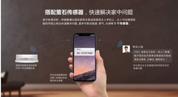 家中遭遇水管漏水、煤气泄漏等险情时,无线水浸传感器和可燃气体探测器将灵敏识别,第一时间给你推送告警消息,你还可以给物业授权限时限次的开锁密码,及时解决险情。