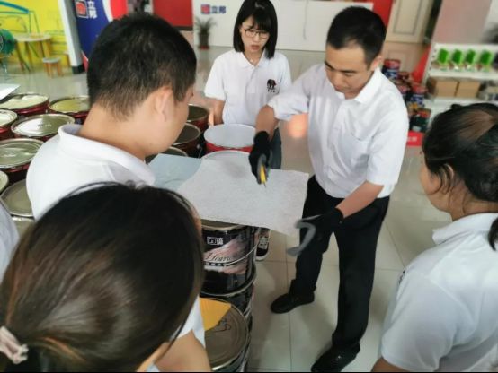 无论在产品品质上还是施工服务中,德爱威都致力于精益求精,更是要求所有员工在专业上精益求进。本期培训主要以理论与实操相结合,辅以营销思路,让学员们熟练掌握涂装工艺与色彩搭配技能。