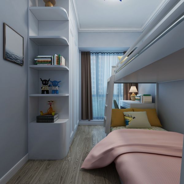 乳白色在儿童房里翻身做主人,浅灰色系默默退居二线,甘做辅助色。眼部神经系统处在成长阶段的儿童有着极高的色彩敏感度,色彩在一定程度上可以启发、引导儿童的创造力,但若在儿童房长期使用浓重或个性鲜明的颜色,容易形成视觉疲劳。倒不如在硬装上使用浅色,再配一些比较有活力的软装床品,经济且实用。