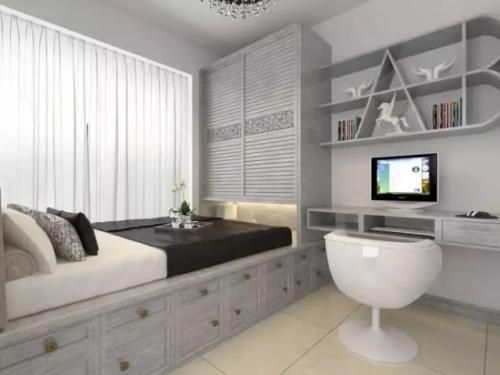 右侧不到一米的宽度,可以增加一个梳妆柜,是不是解决了很多爱美女士的一个大问题的呢!感觉真的非常贴心方便。同时柜子还能当书桌用,弥补了家里没有书房的遗憾。