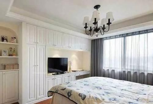 根据卧室的结构来看,衣柜只能布局在床尾,而此时如果你又不想舍弃电视机,那就将二者组合起来吧~