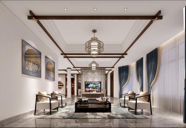 新中式,重在从中式的格局,意境之中,加入“新”的要素,本案结合了当代的语境,将现代的思维与东方美学结合在一起,融合贯穿后展现现代新中式设计中对于人文意蕴考究。
