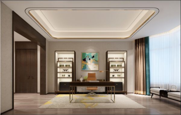 中式书房的陈设不再是纯粹的某一形态,而是利用多元文化的融合,丰富层次,有序的空间自然而然凸显文化底蕴,这既诠释了主人对生活的理解,又有着对自我个性的坚守。