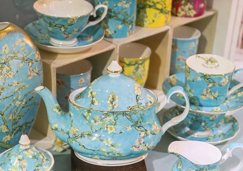 梵高的名作《盛开的杏花》,给人以生命向上的美好寓意。而它与陶瓷的融合,更是展现出清新明快的春日气息。它带来了春天不同寻常的芬芳,哼带来生命新的祈祷。