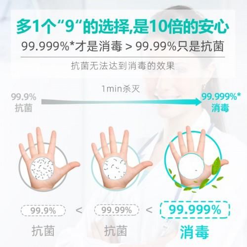 杀菌能力:99.999%的杀菌力,真正达到消毒效果,杀菌能力远远高于市面上标榜99.99%的产品。