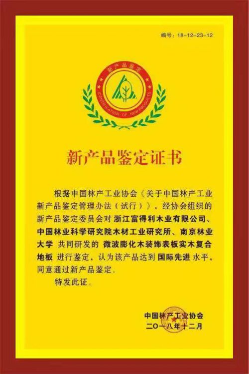 当今国际上流行一种理念,即“三流企业卖苦力,二流企业卖产品,一流企业卖专利,超一流企业卖标准”。这句话深刻地揭示了当今世界企业界群雄纷争的游戏规则,谁能制定标准,谁就是强者和赢家。而富得利更是推动地板行业标准、指南“专业户”。