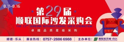 “卓越品质·星级采购”,由顺联家具城•南区主办的第二十九届顺联国际沙发采购会将于2019年8月11日——8月16日期间在顺德乐从顺联家具城·南区隆重举行,让我们相约八月,共筑属于家具人的新梦想!