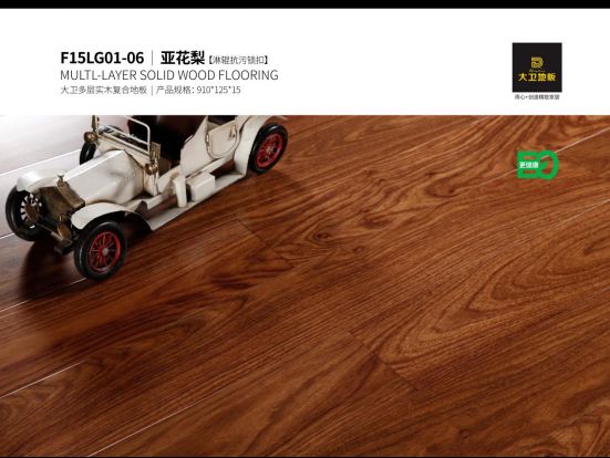 大卫地板多层实木复合自然系列:F15LG01-06亚花梨 淋辊抗污锁扣